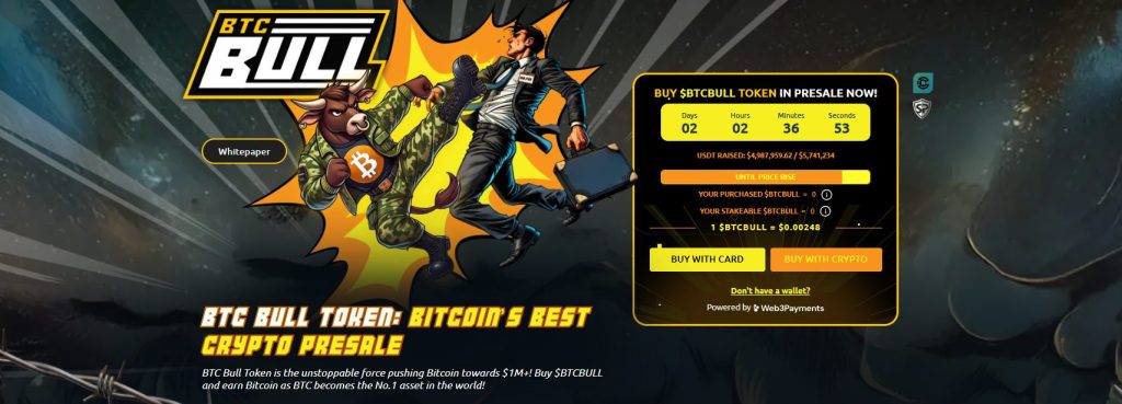 Investor participation in BTC Bull Token ($BTCBULL) continues to accelerate, with the Ethereum-based project approaching a key funding milestone. As of Thursday, the presale has raised $4,987,959.62, moving closer to its next pricing threshold set at $5,741,234.
