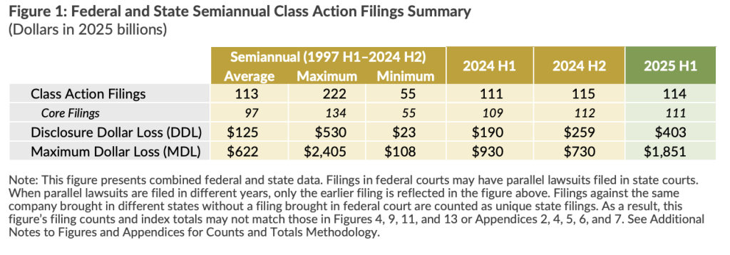 During the first six months of 2025, plaintiffs filed 114 securities class-action lawsuits claiming financial damages across multiple sectors, including cryptocurrency, artificial intelligence, cybersecurity, COVID-19-related businesses, and special purpose acquisition companies (SPACs).