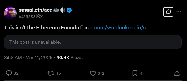 Anthony Sassano, Ethereum educator and founder of The Daily Gwei, posted that the address in question is not the Ethereum Foundation.