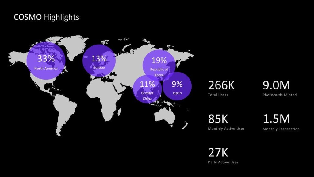 Cosmo has so far seen 266,000 users, 9 million photocards minted, and 1.5 million monthly transactions.