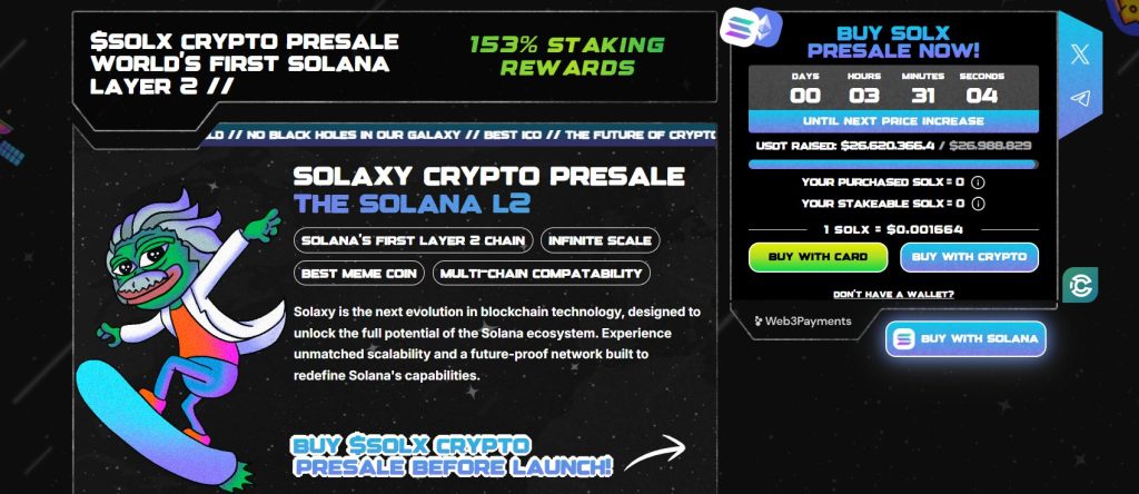 With over $26.4 million raised in its presale and a rapidly expanding community of 72,000+ followers on X, Solaxy is cementing its role as a major force in Solana’s ecosystem.