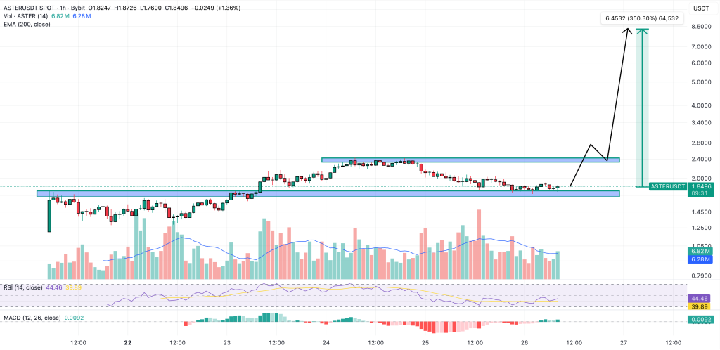 Looking at the 1-hour chart, the key area of support to watch after this recent pullback is the $1.75 level from which ASTER has bounced multiple times already.