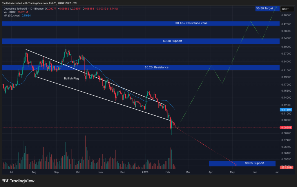 If overall market sentiment improves, DOGE could see substantial gains, potentially climbing from its current $0.09 level to $0.50 by mid-year: a more-than-fivefold increase.