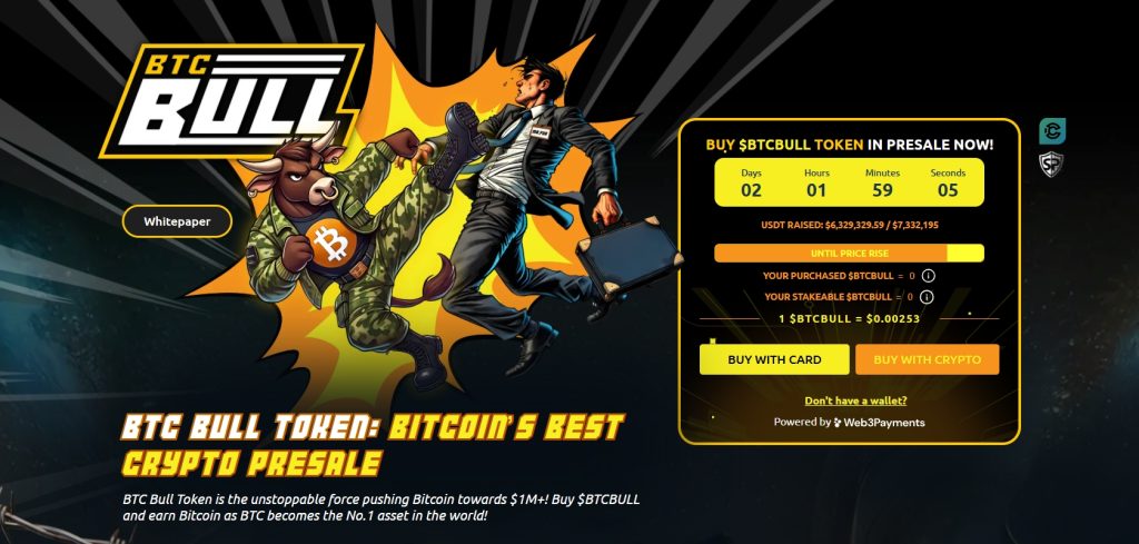 With BTC/USD falling below $108,000, attention is shifting to altcoins like BTC Bull Token ($BTCBULL). So far, $6.33 million has been raised out of a $7.33 million cap. The presale is closing in on its limit, next presale price jump closes in fast.