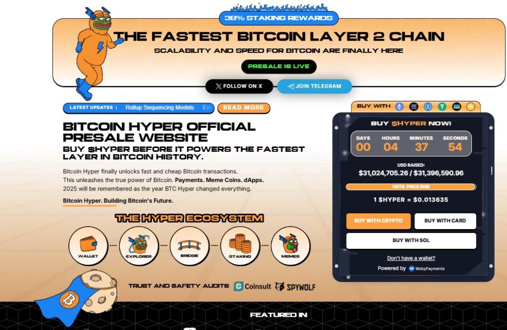 Bitcoin Hyper ($HYPER) is bringing a new phase to the BTC ecosystem. While BTC remains the gold standard for security, Bitcoin Hyper adds what it always lacked: Solana-level speed. The result: lightning-fast, low-cost smart contracts, decentralized apps, and even meme coin creation, all secured by Bitcoin.