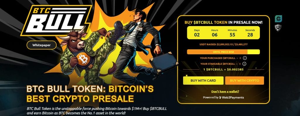 The BTCBULL presale is currently live, with tokens priced at $0.002385 each. So far, $2.89 million has been raised out of a $3.29 million target, signaling robust investor interest. With a price increase expected soon, now is an ideal time to invest in BTCBULL and benefit from its unique reward mechanism.