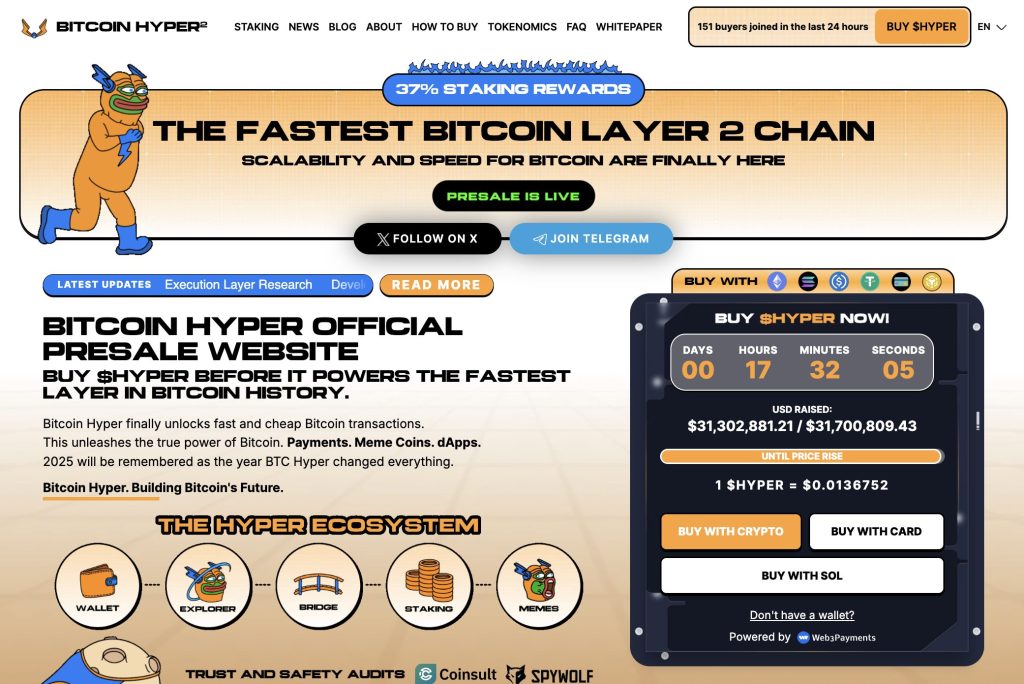 The presale has already raised over $31,200,000, with $HYPER priced at $0.0136751 ahead of the next increase.