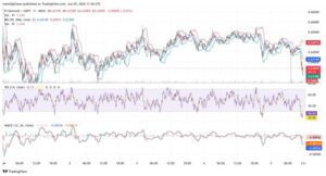 On the 1-minute chart, short-term action shows a small recovery off intraday lows, with RSI climbing to 56.21 and MACD flipping slightly positive — suggesting minor bullish momentum in the very near term.