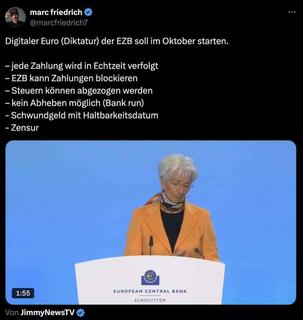 Critics of the CBDC also fear that the digital euro could allow governments to track and control transactions. They argue that financial autonomy and privacy are at risk and call the digital euro a “dictatorship.”
