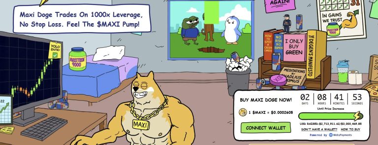 You can buy $MAXI on the official Maxi Doge website using ETH, BNB, USDT, USDC, or a bank card.