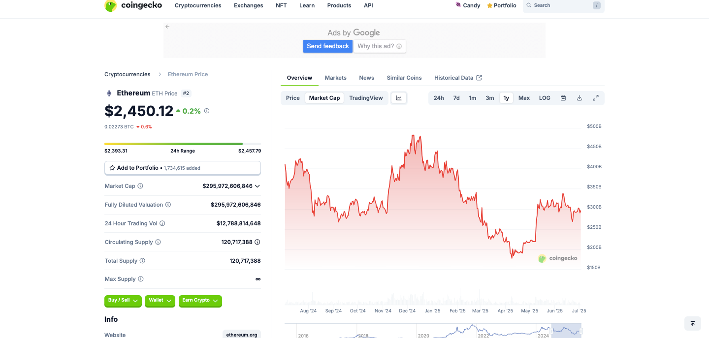 A green candle appears near July 2, indicating a potential relief bounce or dead cat bounce. However, unless Ethereum reclaims the $2,470–$2,600 zone convincingly, this move may be short-lived.