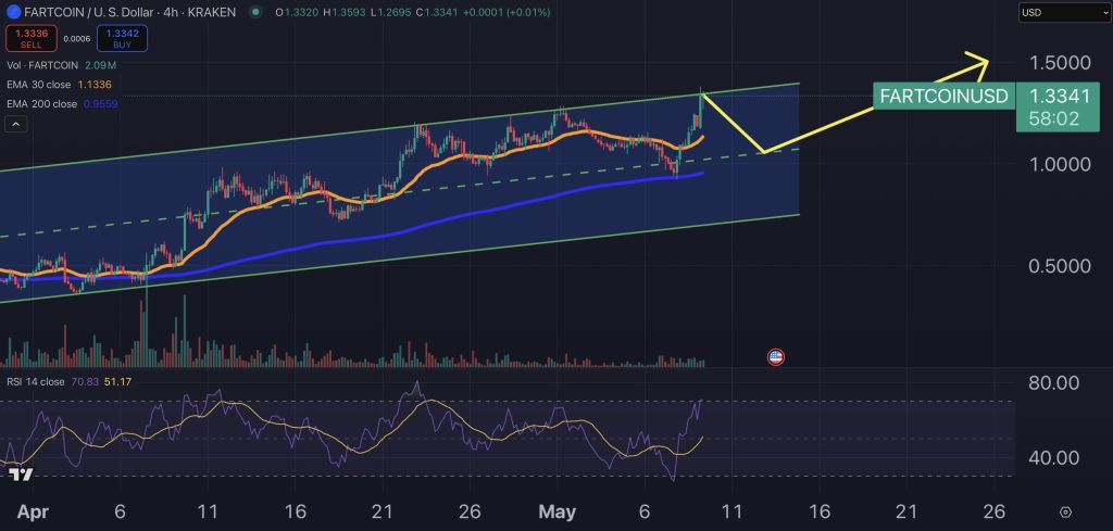 Fartcoin has jumped by 20% today, surging to $1.32 as the cryptocurrency market rises by 4% in the past 24 hours.