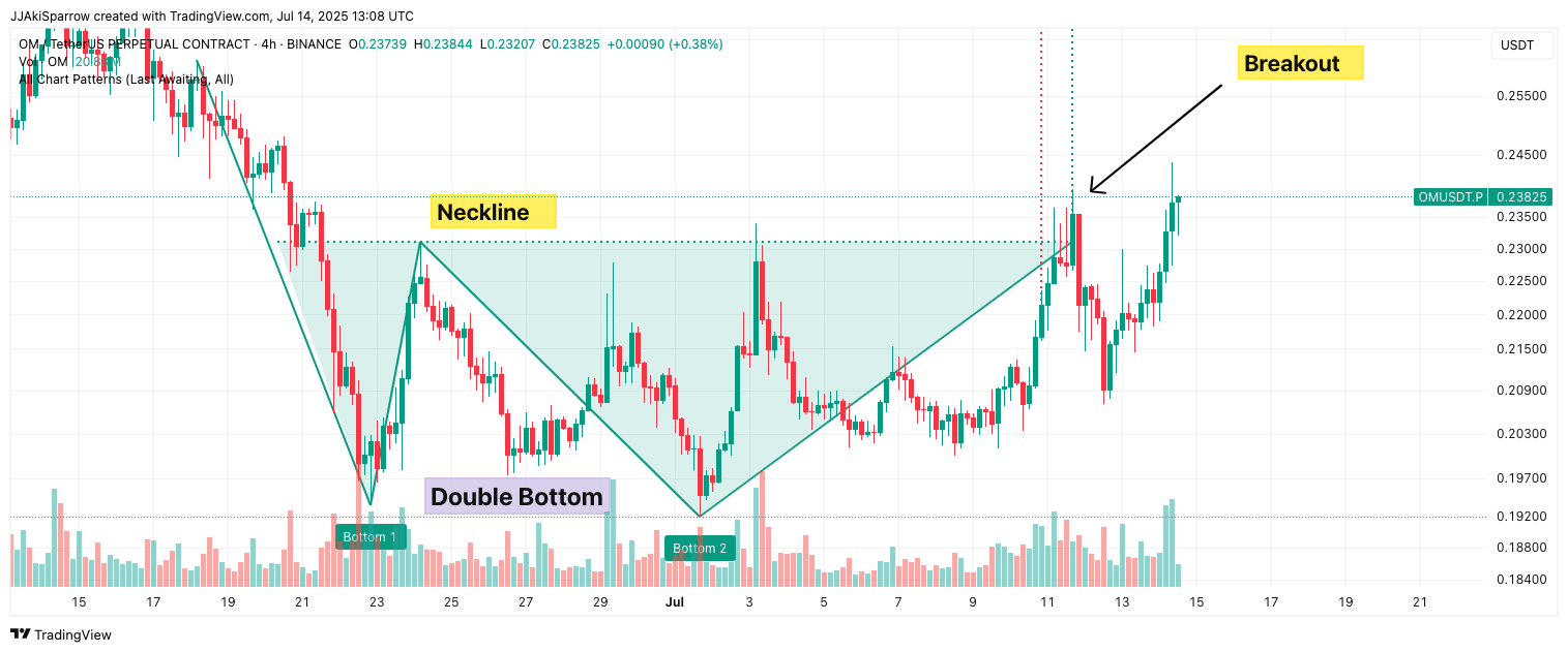 OM/USDT Breaks Out of Double Bottom—Bullish Reversal Targets $0.260 and Above