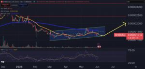 The Moonpig crypto price has been trading within a narrowing consolidation zone since its sharp rise, forming a symmetrical triangle pattern.