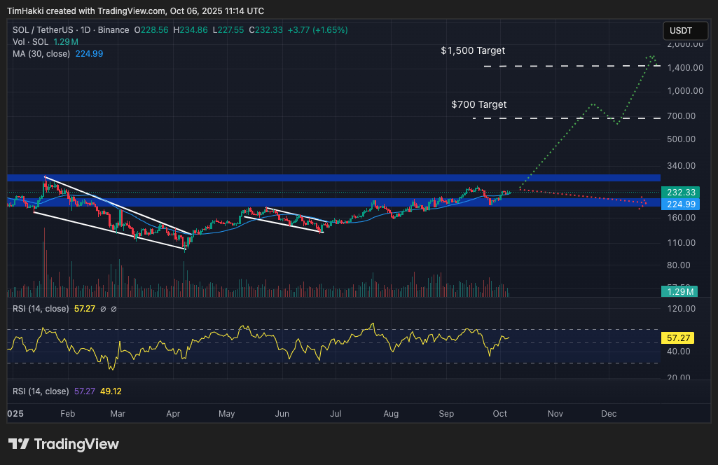 Price-wise, Solana hit $250 in January, dipped to $100 in April, and rallied back to $247 on September 19, nearly reclaiming its yearly high. Currently trading around $232, SOL appears poised for another leg up.