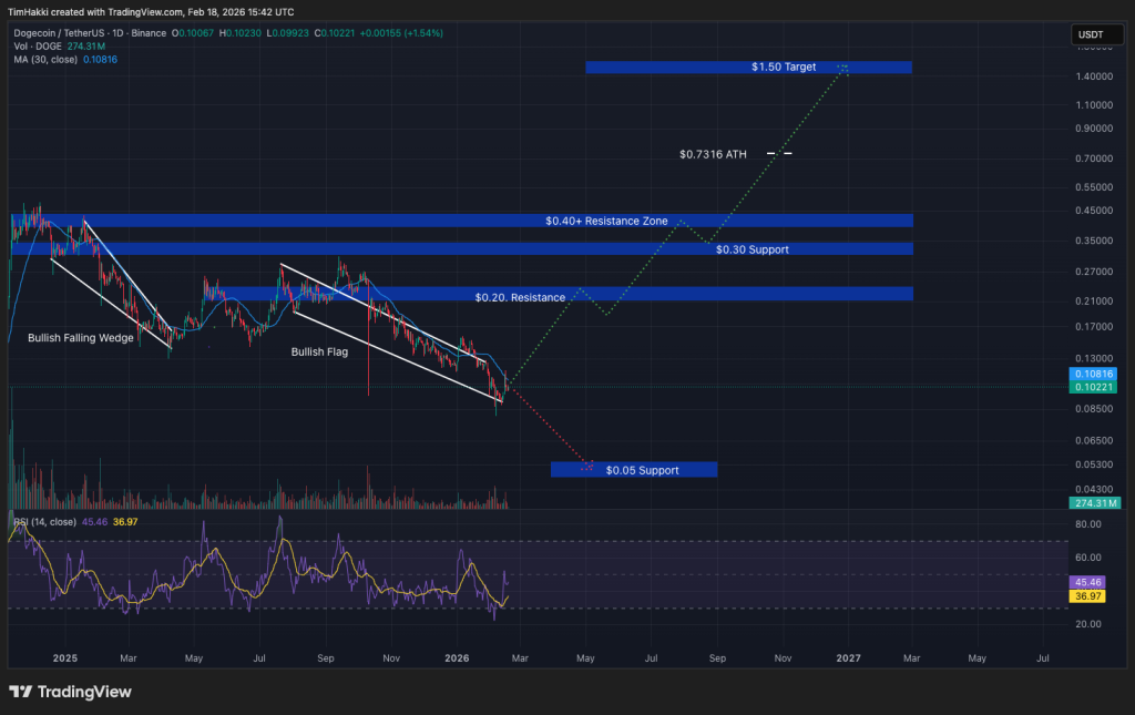 DOGE last set an all-time high of $0.7316 during the retail-driven bull market of 2021.