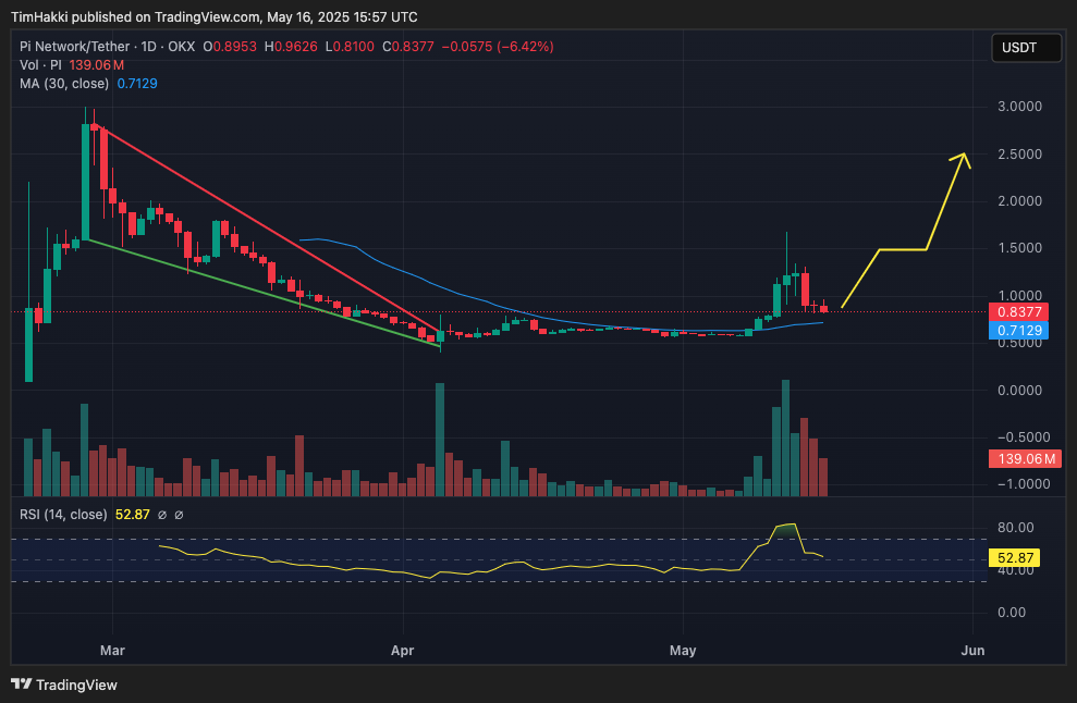 Pi Network ($PI) may be cooling off from a recent rally, but several key announcements are likely to push its price up to $2.50 by summer.