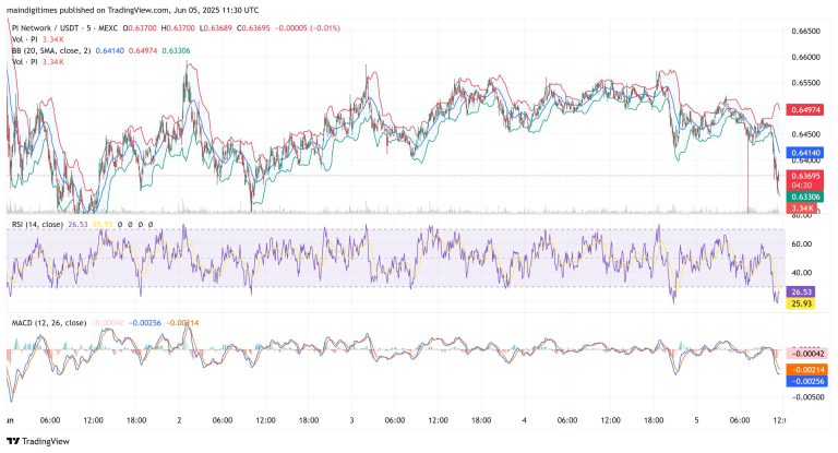 Pi Coin continues to face bearish pressure, with the token hovering around $0.637 at press time.