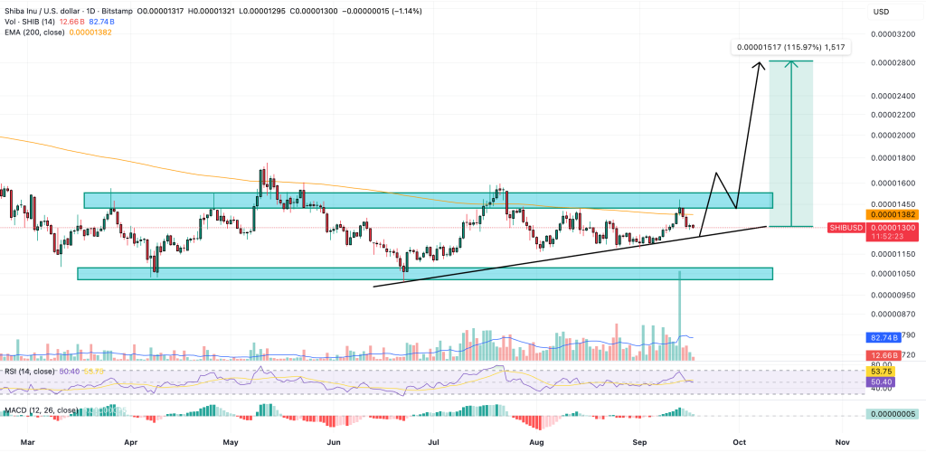 From a technical perspective, $0.00001250 stands out as a critical support level, perfectly aligned with SHIB’s long-term trend line.