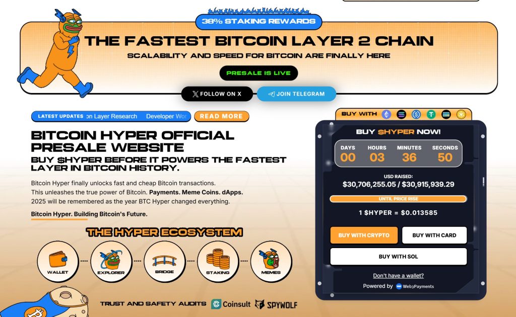 Bitcoin Hyper ($HYPER) is bringing a new phase to the Bitcoin ecosystem. While BTC remains the gold standard for security, Bitcoin Hyper adds what it always lacked: Solana-level speed. The result: lightning-fast, low-cost smart contracts, decentralized apps, and even meme coin creation, all secured by Bitcoin.