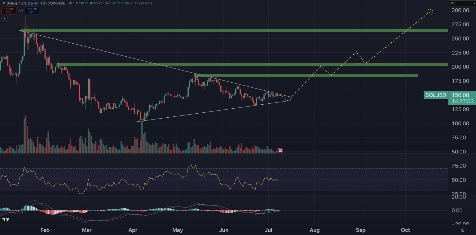 This means that the Solana price could struggle to break new ground in the near term, although the eventual approval of SOL ETFs – perhaps in the late summer or early fall – could see it reach $250 by Q4 and then $350 by the end of the year.