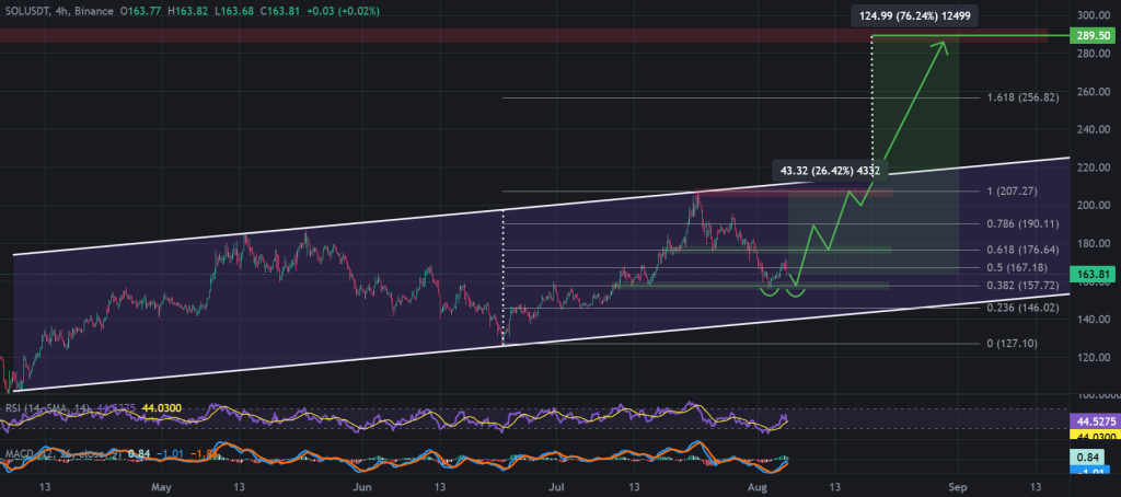 The new week has seen the Solana price find support around the 0.382 Fibonacci level at $157.70, a common reversal for steep corrections that could flag a reversal underway.