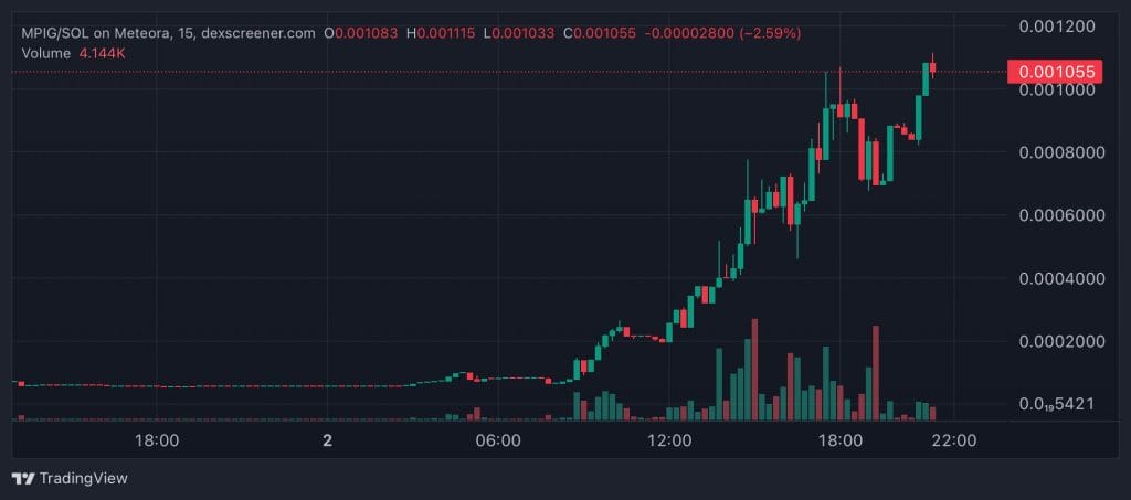 The next name in the top crypto gainers today list worth mentioning is ManBearPig (MPIG), a new Solana meme coin.