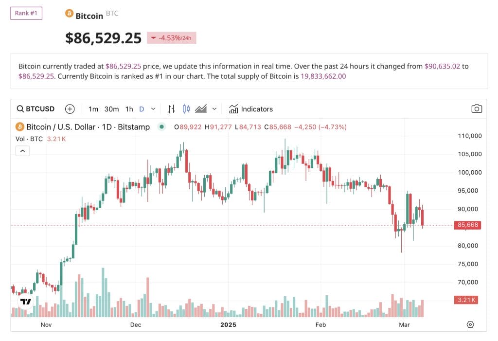 Following the summit BTC price is trading around $86,500, down 4.5% so far on Friday, with the market seemingly disappointed by the strategic Bitcoin reserve announcement.