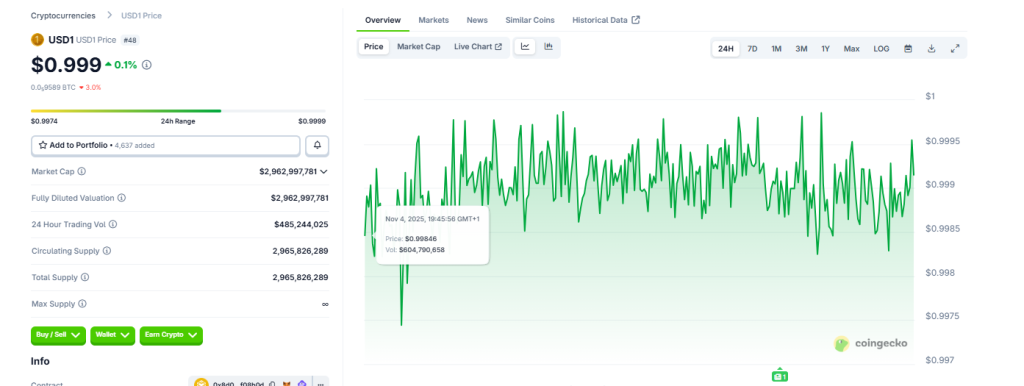 On October 31, the company launched a “USD1 Points Program” designed to reward users who participate in DeFi activities involving the stablecoin.
