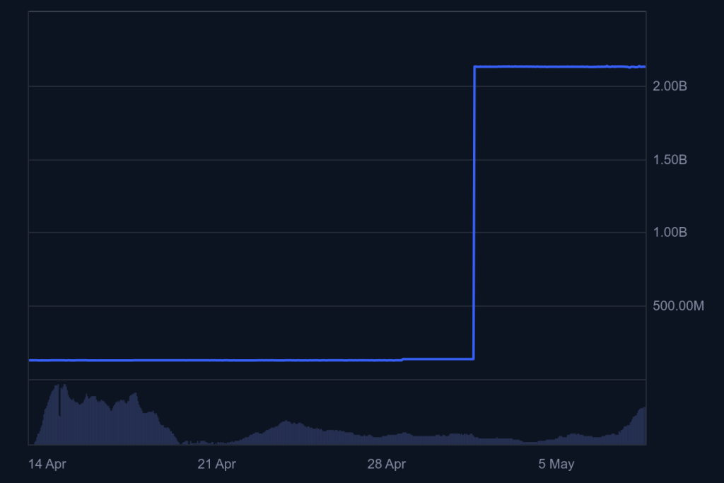 Between April 27 and April 30, several large mintings occurred, some exceeding $90 million per transaction. These events led to a spike in supply that catapulted USD1 past the $2 billion market cap mark on April 30, according to data from CoinGecko, CoinMarketCap, and DefiLlama.