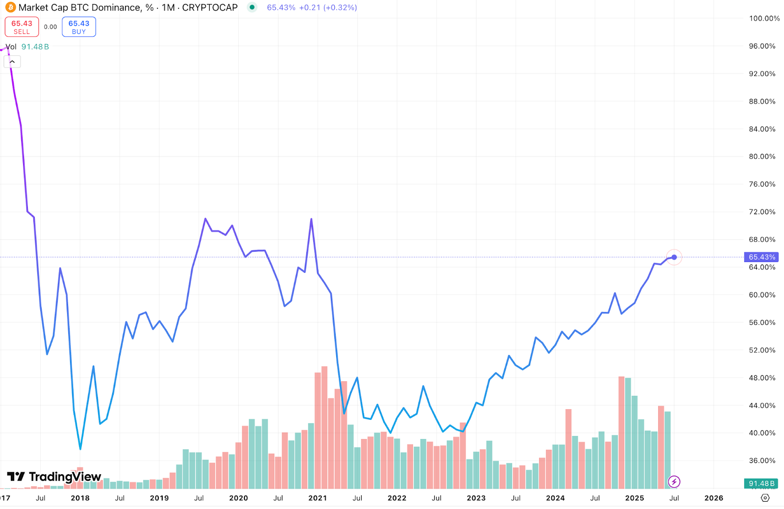 Bitcoin Dominance 2017-Present (Source: TradingView)