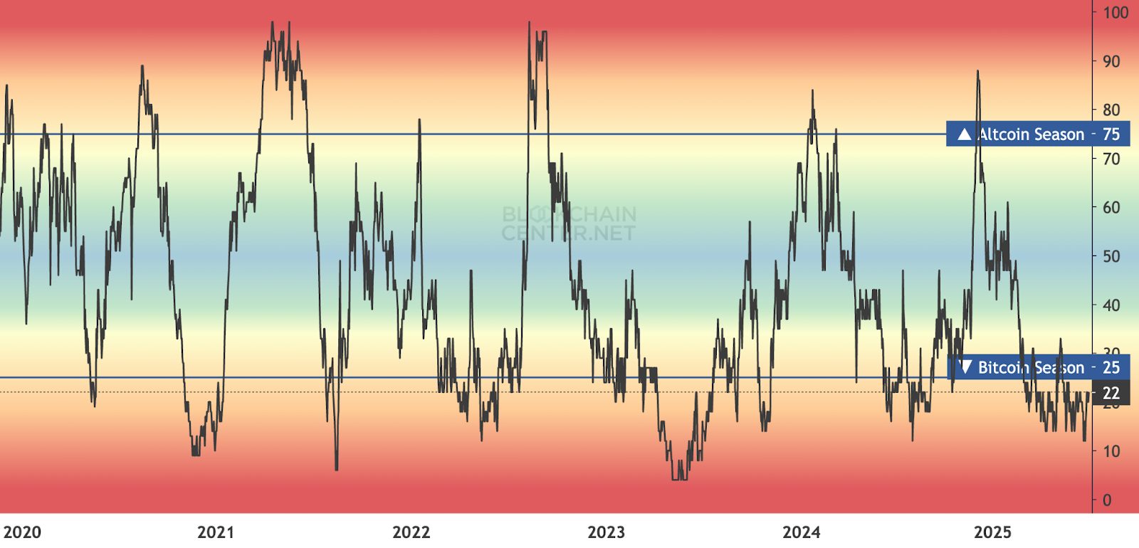 Altcoin Season Index 2020-Present (Source: Blockchaincenter)