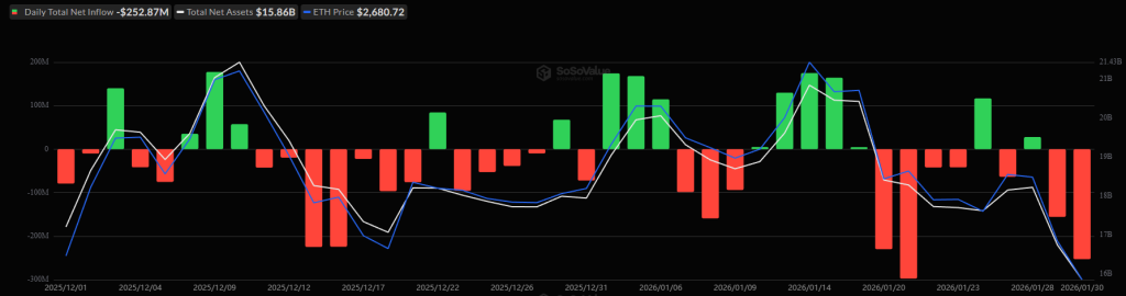 Over the past week, ETH dropped 13%, trading within the $75,442–$90,117 range. It also fell 15% in the past 30 days and just below 40% from its all-time high of $126,080, recorded in October 2025.