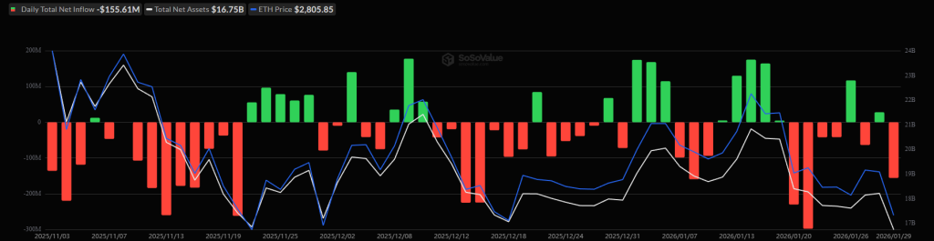 The US ETH ETFs also posted inflows during the Thursday session, letting go of $155.61 million. The total net inflow stands at $12.23 billion.