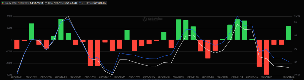 Moreover, the US ETH ETFs outperformed their BTC counterparts on Monday, posting inflows of $116.99 million. With this, they also broke a four-day red streak. The total net inflow climbed slightly to $12.42 billion.
