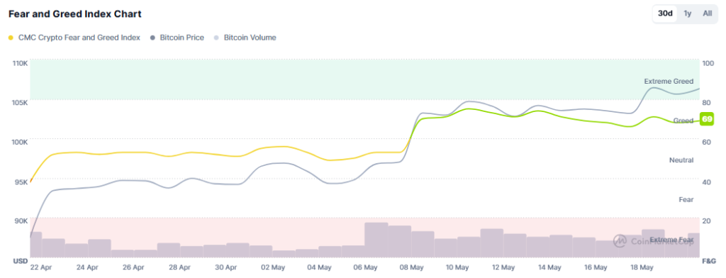Moreover, the Fear and Greed Index has recorded a slight increase since this time yesterday, from 68 to 69, going deeper into the greed territory. As previously noted, this signals investor optimism, confidence, and willingness to take risks as a result of higher prices and trading volumes. That said, it can also lead to overconfidence and overvaluation, which typically precede a correction.