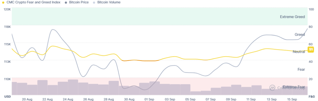 Meanwhile, the crypto market sentiment has remained mostly unchanged over the past few days. The crypto fear and greed index moves between 50 and 53, standing at 51 today.