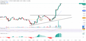 Trading volumes have more than doubled during this period and the price currently sits at $2.21 per token.