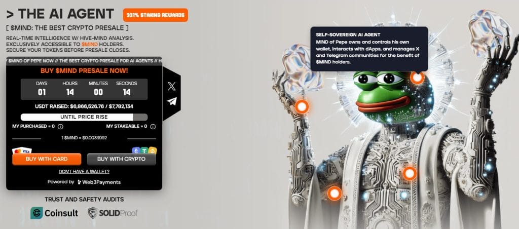 MIND of Pepe ($MIND) is an AI-powered crypto project designed to help users navigate the fast-moving meme coin space.