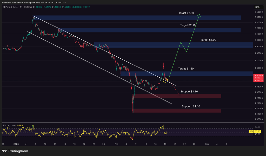 XRP price is sprinting. Since the February 6 low, the token has ripped about 38% to $1.55. Meanwhile, Bitcoin and Ether are crawling with gains closer to 15%.