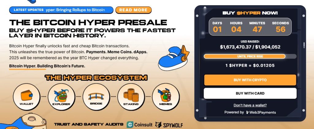 Designed to merge Bitcoin’s security with Solana’s speed, Bitcoin Hyper enables fast, low-cost smart contracts, dApps, and meme coin creation, all with seamless BTC bridging. The project is audited by Consult and engineered for scalability, trust, and simplicity.