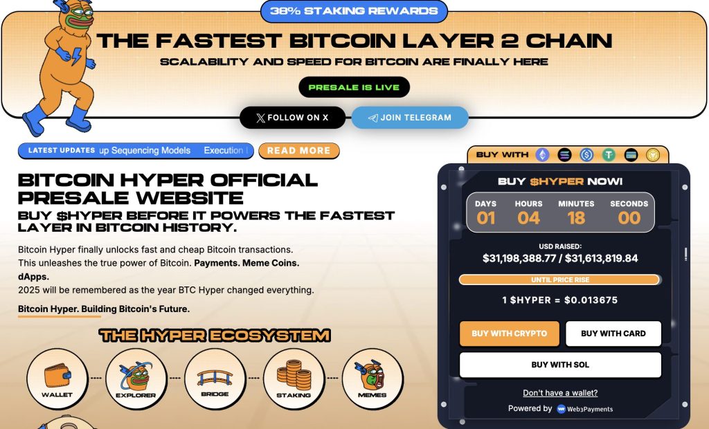 The presale has already raised over $31,000,000, with $HYPER priced at $0.013635 before the next increase.