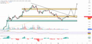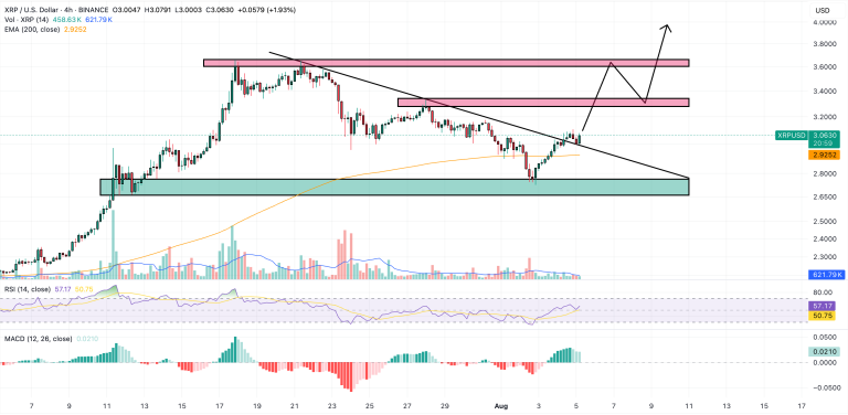 In the 4-hour chart, XRP has broken out of a descending triangle pattern, often seen as a bullish reversal signal.